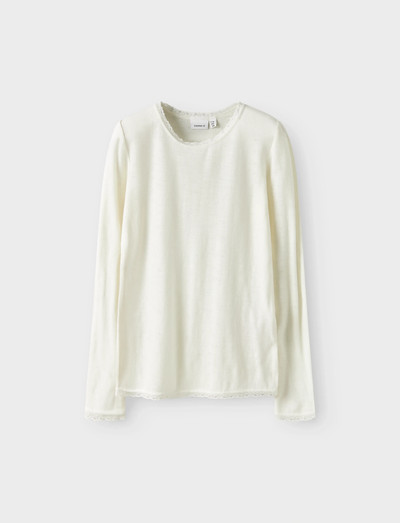 Mjúk ull gerir þessa síðermabol að notalegri viðbót við fataskáp hvers barns. Needle drop smáatriðin skapa einstakt áferðarmynstur, en viðkvæm blúndukanturinn bætir við snert af glæsileika. Hannað með klassískum hálsmáli og þægilegri, grannri snið.