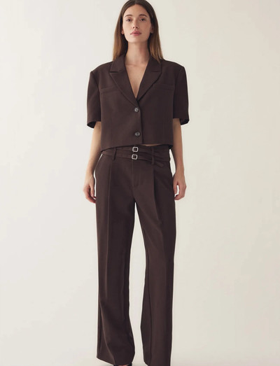 Yfirstærð, stytt snið og stuttar ermar gefa þessari klassísku blazer nýtt yfirbragð. Þetta stykki býður upp á nútímalegan blæ á hefðbundna sniðagerð, fullkomið til að bæta stílhreinum blæ á hvaða fatnað sem er.