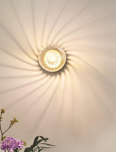 Chisell draws inspiration from the glamourous Art Deco style and features modern brass and swirled glass. The swirled glass dome creates a beautiful light effect on the wall. Use Chisell as a statement piece in your living room or as a luxurious bedside lamp.