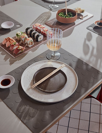 With inspiration in the 80s linoleum flooring that has structure that challenges tactility, we have designed this non-slip placemat for the whole family. The Dotto Placemat has small elevations that catch small crums - with a modern design and playful colors, this cover napkin fits large and small.