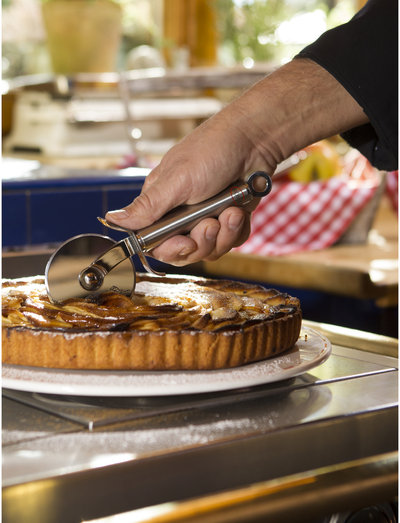 The RÖSLE pizza cutter with its large, firmly anchored wheel guarantees neat slicing of pizza - thick or thin - without damaging the topping. Not dishwasher-safe.