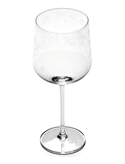 Besides a porcelain dinnerware and coffee set, Midnight Flowers - Italian fashion house Marni’s first tableware collection - also comprises 5 refined glasses: a water glass on a small base, a champagne coupe and flute, and wine glasses. Each glass features a laser-engraved flower motif. This labor-intensive process is repeated three times for an optimal effect. Finally, the engraved glass is finished with an oil-based polish to enhance the subtle transparency of the engraved motif.