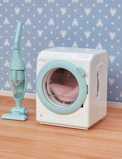 3+ ÁrLaundry & Vacuum Cleaner features a dial on the washing machine that can be turned to spin the drum. Turning the drum gives the impression of water flowing inside the machine. The hand-held vacuum can be removed from the main unit. The vacuum cleaner can be used as a standalone unit.