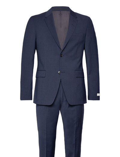 Skörp sniðsnið skilgreinir þessa tveggja hluta jakkaföt. Jakkinn er með haklappa og tveggja hnappa lokun, en buxurnar bjóða upp á klassískt, straumlínulagað snið.