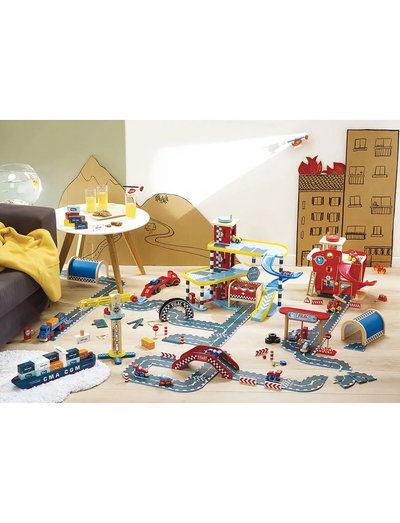 Container truck made of wood. Part of the Vila City collection that is loaded with wooden containers which click together using magnets.