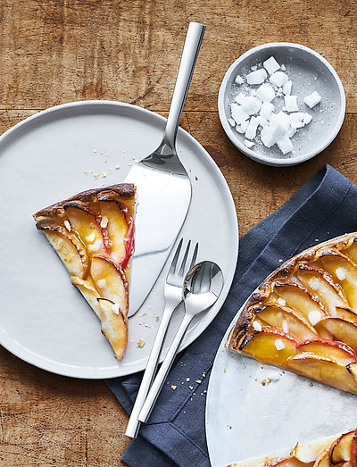 Whether fluffy cream or chocolate icing, the WMF cake knife cuts through any cake with ease and can also be used for serving. The smaller member of the fork family - the cake fork is usually three-pronged. Often crafted with a larger, bevelled tine on the left side, it can be used like a knife to portion cake, pies or pastry. Fruit and dessert dishes can also be eaten with a cake fork. The small forks are available separately or as part of a set. All items are combined in one set.