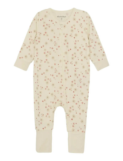 Nightsuit from MINYMO with all-over-print. The nightsuit has long sleeves and legs and ribbing at the wrists and ankles. At the ankles the ribbing can be folded down. The nightsuit is made of bamboo viscose and closes with a zipper on the front.