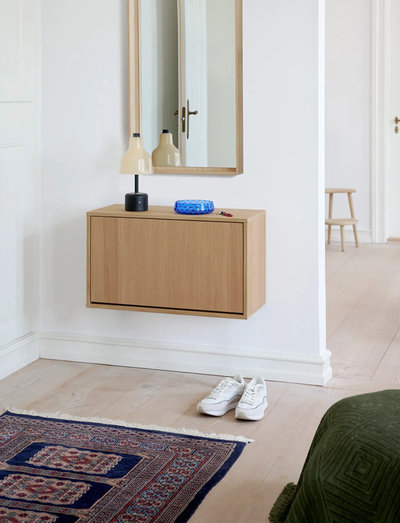 "ReCollector" batų dėžė - susikurkite savo stilingą saugojimo sieną. Mūsų batų dėžės - puikus sprendimas stilingai ir efektyviai tvarkyti batus. Galima rinktis iš šešių skirtingų variantų - penkių gražių spalvų ir vieno elegantiško ąžuolo - kiekvienoje dėžėje galima laikyti iki 8 porų batų, todėl turėsite daug vietos sportbačiams, batams ir suknelėms. Batų dėžė idealiai tinka jaukiam prieškambariui, gerai organizuotai spintai ar struktūrą ir tvarką turinčiam pagalbiniam kambariui. Dėl paprasto ir klasikinio dizaino dėžė lengvai įsilies į jūsų asmeninį interjerą, o jūsų namams suteiks natūralios elegancijos, tvarkos ir funkcionalumo. Dėžutė tvirtinama prie sienos, todėl neužima vietos ant grindų ir užtikrina lengvą valymą. Batų dėžes galite statyti vieną ant kitos, vieną šalia kitos arba taip, kaip tinka jūsų stiliui ir namams. Derinkite jas su kitomis mūsų dėžėmis, kurios atitinka tą patį stilių ir spalvų paletę, kad sukurtumėte asmeninę sandėliavimo sieną, atspindinčią jūsų skonį. Batų dėžė lengvai atsidaro su spaudžiamuoju užraktu, kad galėtumėte greitai pasiekti batus. Ji surinkta ir sukurta taip, kad būtų ilgaamžė, todėl galite drąsiai laikyti batus žinodami, kad jie bus gerai apsaugoti. Viršutinį skydelį taip pat galite naudoti sandėliavimui arba stilizacijai su dekoratyviniais elementais. Mūsų batų dėžės pagamintos Danijoje iš FSC sertifikuotos medienos. Trumpai tariant, "ReCollector" batų dėžė yra puikus būdas praktiškai ir paprastai tvarkyti batus, o jūsų namus papuoš graži ir elegantiška detalė. Spalva yra 30 blizgesio. Atkreipkite dėmesį, kad pasirinkome plokščią batų dėžę, kad supaprastintume transportavimą ir išvengtume transportavimo pažeidimų, o tai galiausiai sumažina mūsų suvartojamo CO2 kiekį. Todėl dėžė nėra surinkta, tačiau, pasinaudojus mūsų išsamiu vadovu, ją lengva ir paprasta surinkti ir sumontuoti. Priežiūra: Batų dėžę galima valyti minkštu drėgnu skudurėliu arba kempine. Jei reikia, įpilkite švelnaus indų ploviklio arba įprasto muilo. Nuvalykite švaria, sausa šluoste.
