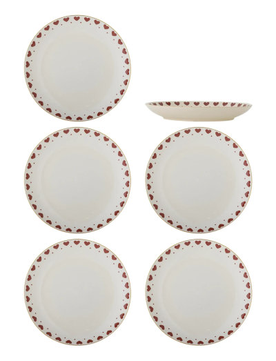 The Jolly Plate by Bloomingville is an elegant dinner plate with a printed heart motif. The golden, hand-painted edge adds a charming touch to the table setting and ensures that each plate is unique. Perfect for both everyday and festive occasions, the plate creates a warm and inviting atmosphere. Set of 6 plates.