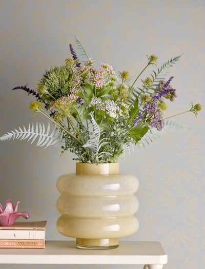 The Sahara Vase by Bloomingville is made of yellow-colored glass with an organic, bubbly shape. The soft and lively design adds a delicate touch that fits beautifully into most interiors. The vase is ideal for flowers but also works well as a decorative element on its own.