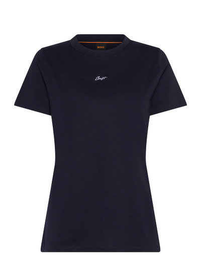 Šis trumpomis rankovėmis viršus pagamintas iš minkšto audinio ir yra patogus dėvėti. Jis turi apvalią iškirptę ir subtilią logotipo detalę, todėl yra universalus jūsų garderobo papildymas.
