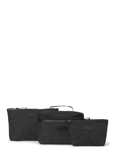 A versatile set consisting of three quilted toiletry bags in different sizes and styles. The flatter model features two open pockets, while the box-shaped one includes elastic loops, a zip pocket, and a handle—ideal for both storage and travel. All bags have zip closures and are made with 100% certified recycled material for both outer fabric and lining. Dimensions: H: 14 cm / W: 18 cm / D: 4.5 cm, H: 20 cm / W: 28 cm / D: 4.5 cm amd H: 17 cm / W: 25 cm / D: 14 cm.