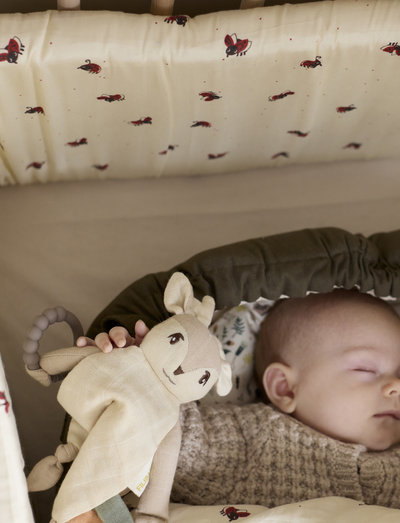The fawn's gentle facial expression will quickly capture your baby's interest and has plenty of fine details that those small hands just have to explore. All small details are of course embroidered on the toy, so you don't have to worry about small parts. The cuddle cloth is approved from 0+.