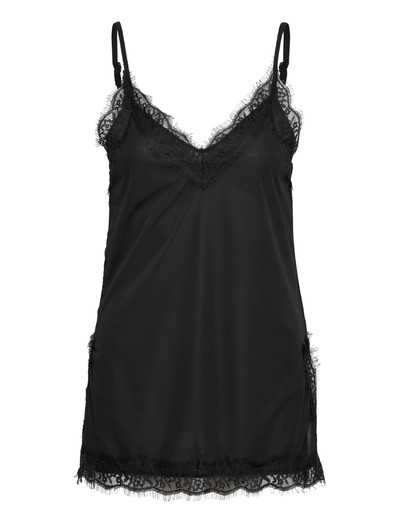 Subtilūs nėrinių apvadai išryškina šį viršų. Lengvas audinys ir reguliuojamos petnešėlės užtikrina patogų prigludimą, todėl jis idealiai tinka dėvėti kaip apatinį sluoksnį arba atskirai.
