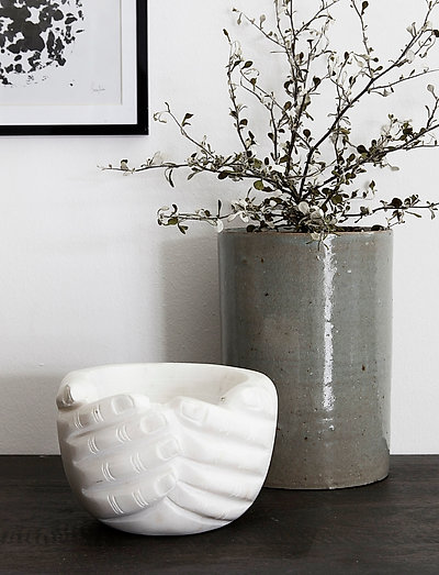 "Hands from house doctor" yra gražus ir dekoratyvus dubuo, pagamintas iš marmuro. dubuo suprojektuotas taip, kad atrodo, tarsi dubenį sudarytų dvi rankos. dėl šios dekoracijos dubuo yra unikalus ir tikrai ypatingas. šviesi spalva puikiai tinka jaukiai ir šiltai atmosferai namuose sukurti. dubenį naudokite vaisiams laikyti toje pačioje vietoje arba naudokite jį kaip dekoraciją šaltais žiemos mėnesiais, į dubenį įdėdami pušies spurgų. bet kuriuo atveju tai yra gražus elementas, kuris neabejotinai suteiks jaukumo ir šilumos bet kuriems namams: 15x15x10 cm .