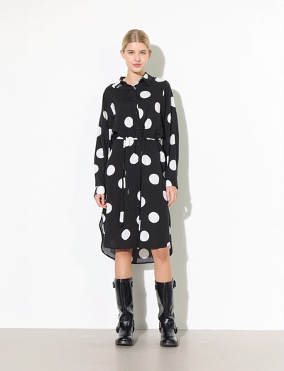Hunkøn Vicky Shirtdress is a knee length dress with low shoulders and loose fit. The bottom edge is rounded with a slightly longer back piece.The dress has a visible button closure down the front and cuffed long sleeves. Vicky Shirt is 100% ViscoseThe model is 176 cm and wears a size M.