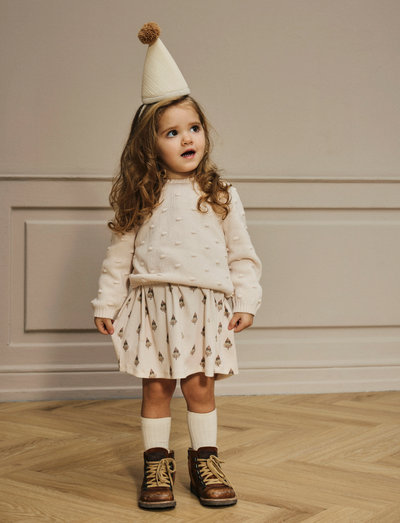 Šis megztas viršus yra laisvo stiliaus, todėl užtikrina patogią ir madingą kasdienę išvaizdą. Jis turi ilgas rankoves su briaunotais rankogaliais, O formos iškirptę ir sagos bei kilpos užsegimą nugaroje.
