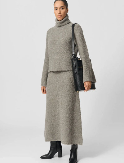 Šis trikotažas su aukštu kaklu ir ilgomis, plačiomis rankovėmis suteikia ir šilumos, ir modernaus silueto. Šiek tiek patrumpintas ilgis idealiai tinka dėvėti sluoksniais arba atskirai.