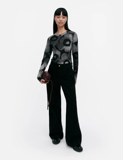Ryškus gėlių raštas apibrėžia šį marškinėlį ilgomis rankovėmis, todėl jis yra išskirtinis drabužis. Prigludęs dizainas užtikrina figūrą pabrėžiantį siluetą, puikiai tinkantį dėvėti vieną arba sluoksniuoti.