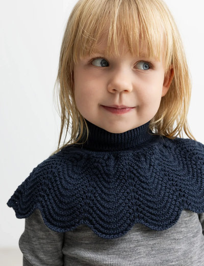 AntibakterinisKnitted neck warmer that provides optimal protection against the cold by covering the neck while fitting comfortably snug. The neck warmer has decorative wavy edges and an eyelet pattern at the bottom, adding an elegant and feminine touch.