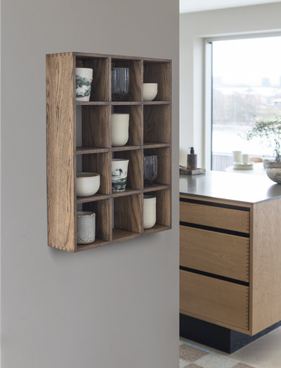 Puikiai tinka įvairiems tikslams: virtuvėje - mėgstamiausiems puodeliams ir stiklinėms eksponuoti, biure - brangiems daiktams demonstruoti, vonioje - visiems būtiniems daiktams arba vaikų kambaryje - žaislams. Dėl natūralios ąžuolo masyvo konstrukcijos kiekviena dėžutė yra unikali, nes skiriasi jos spalva, raukšlės ir tekstūros raštai, todėl ji yra išskirtinė ir laikui nepavaldi namų puošmena.
