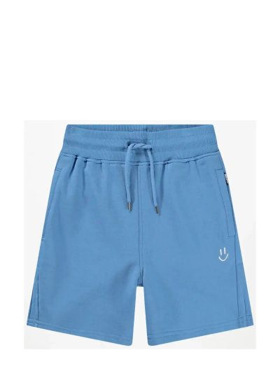 Soft cotton jersey shorts designed for comfort and style. Featuring a clean, relaxed look, they include side pockets, a back pocket, and a charming embroidered smiley face at the front. The elastic waistband adjusts with a drawstring for a secure fit, making them perfect for everyday play and adventures. Ideal for warm weather, these shorts will be a favorite in any child's wardrobe.