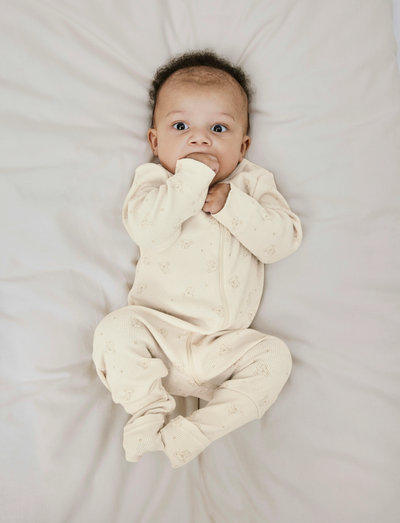 Užtikrinkite ramų nakties miegą su šiuo minkštu miego kostiumu, sukurtu maksimaliam patogumui. Briaunotas trikotažas yra švelnus ir puikiai tamprus, o užtrauktukas užtikrina lengvą apsirengimą. Ilgomis rankovėmis ir kojų galais, kad mažyliai būtų šiltai, užbaigtas užtrauktuko apsauga, kad būtų saugiau, ir visą gaminį dengiantis raštas.