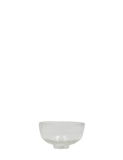 The Kuki Bowl in glass features bubble splashes that add a touch of whimsy to its minimalist design. The square foot adds a playful element to its timeless aesthetic, blending functionality with elegance. Use it for your table setting or simply as a decorative piece. Being mouthblown, each bowl will vary in size, adding to its unique charm.