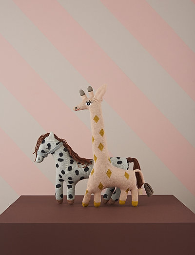 The giraffe is made of 100% cotton knit, with a soft fibre filling.
