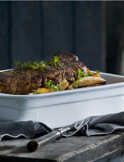 Large 34 x 25 cm rectangular lasagne dish with high edges for all oven dishes.