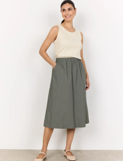 Šis sijonas yra stilingas ir universalus drabužis, kurį galima apsirengti tiek elegantiškai, tiek kasdieniškai. Jis turi patogų elastinį juosmenį ir grakštų A linijos siluetą. Sijonas pagamintas iš lengvos ir kvėpuojančios medžiagos, todėl jis puikiai tinka dėvėti visą dieną.