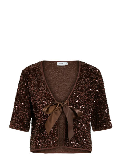 Žvilgantys blizgučiai išryškina šį priekyje surišamą viršų, todėl jis yra išskirtinis drabužis bet kokiai ypatingai progai. Trumpos rankovės ir atvira priekinė dalis suteikia lengvo elegancijos, puikiai tinka dėvėti ant mėgstamos palaidinės ar suknelės.