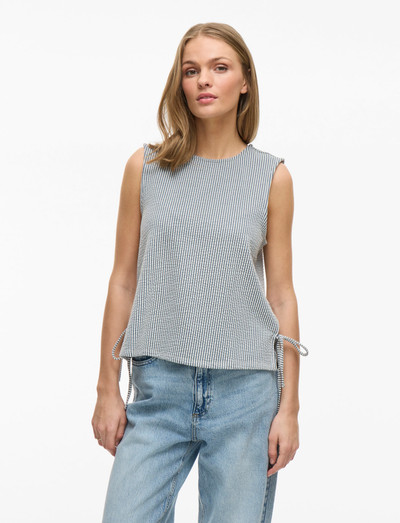 Šis Vila viršūnė yra stilingas ir universalus drabužis, kurį galima apsirengti tiek kasdienai, tiek ypatingoms progoms. Jis turi klasikinį dryžuotą raštą ir patrauklią formą. Viršūnė pagaminta iš minkšto ir patogaus audinio, kuris puikiai tinka dėvėti visą dieną. Raištelių detalės šonuose suteikia moteriškumo ir leidžia jums reguliuoti formą pagal savo skonį.