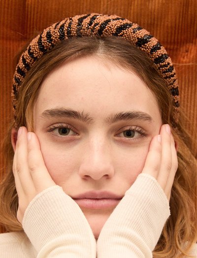 Pievienojiet savam matu sakārtojumam bohēmisku šiku ar šo matu stīpu ar pērlītēm. Platais dizains ir veidots ar sarežģītiem pērlīšu izšuvumiem, radot izteiksmīgu aksesuāru, kas bez piepūles papildina jebkuru izskatu.