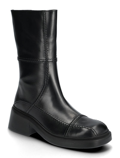 Detalizētas šuves uzlabo šī ar rokām darinātā zābaka izskatu, ko papildina līdz teļa vidum sniedzošs stulms un apaļš purngals.