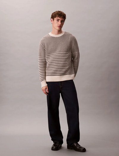 Šim trikotāžas izstrādājumam ar apaļu kakla izgriezumu ir smalks raksts un izsmalcināts izskats. Garās piedurknes padara to par daudzpusīgu apģērba gabalu.