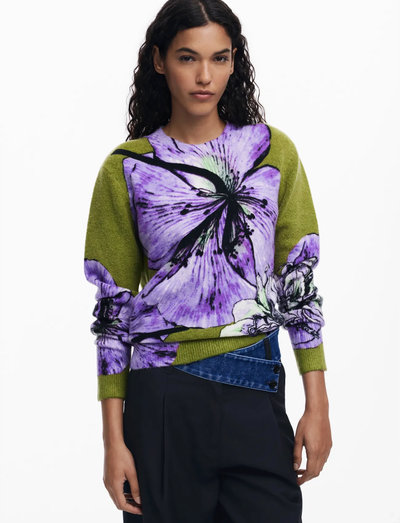 Drosmīgi ziedu grafiki definē šo izteiksmīgo trikotāžu. Mīkstajam džemperim ir garas piedurknes un ērts piegriezums, padarot to par stilīgu un viegli valkājamu apģērba gabalu.