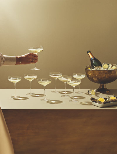 Šī unikālā, mutē pūstā šampanieša glāze ar ikonisko leņķveida malu būs lielisks papildinājums jebkuram īpašam pasākumam. Gan uz galda, gan rokās. Šampanieša kausa forma padara to īpaši piemērotu saldajiem dzirkstošajiem vīniem un šampanietim, ļaujot aromātam un burbuļiem ātri pacelties virspusē, lai uzlabotu garšu. Stikla plānā, elegantā mala nodrošina izsmalcinātu dzeršanas pieredzi. Champagne Coupe pieder Eva Solo vīna glāžu sērijai, kas izstrādāta ciešā sadarbībā ar profesionāliem someljē. Glāzi var izmantot arī dzērieniem un pat uzkodu un nelielu uzkodu vai desertu pasniegšanai.