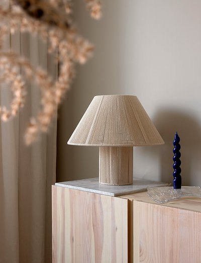 Anna bija dizainera mikaela vecmāmiņa. viņa bija strādīga šuvēja un strādāja vēlās naktīs pie dažādiem projektiem. šī galda lampa ir cieņas apliecinājums un iedvesma viņas pamatīgajam darbam. lampa ir izgatavota no kokvilnas diegiem, un tie ir vīti ar rokām, kas nozīmē, ka aiz šīs lampas slēpjas patiesa meistarība, kas prasa laiku. lampai ir 200 cm garš tekstilmateriāla kabelis ar slēdzi un eirozāmi. dizains: Mikael Holvik. platums: 35 dziļums: 35 augstums: 32 (cm ). lampas turētājs: Lukturis: 1xe27 60w.