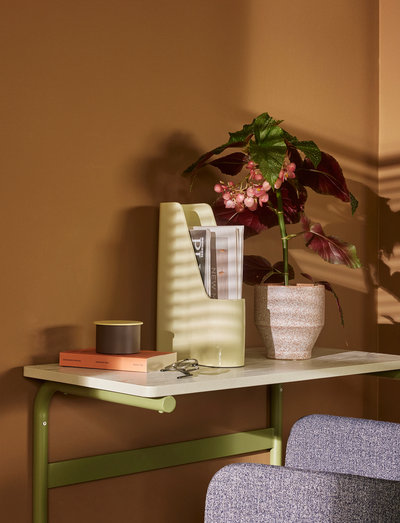 Iepazīstinām ar Koi Desk - elegantu pie sienas montējamu risinājumu, kas neaizņem nekādu grīdas platību un ir ideāli piemērots efektīvām attālinātām darba dienām. Šis rakstāmgalds ir izgatavots no FSC sertificētas koksnes, tam ir pulēta oša finiera apdare un izturīgas metāla detaļas, apvienojot praktiskumu ar elegantu estētiku. Galdiņa smalkais zaļš/pelēks tonis papildina jebkuru interjera interjeru. Lai izveidotu vienotu biroja vidi, apvienojiet to ar plauktu Koi, veidojot gan funkcionālu, gan vizuāli pievilcīgu biroja iekārtojumu.