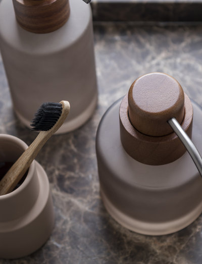 Piešķiriet savai vannas istabai ekskluzīvu uzlabojumu ar skaisto MODEST ziepju dozatoru no Mette Ditmer. Zemais dozators ir veidots no stikla ar matētu apdari siltā valriekstu krāsā, kas izceļ moderno izskatu. Sūknis ir izgatavots no koka ar matētu laku un noapaļotām malām, kas piešķir pievilcīgu un modernu izskatu. Spīdīgais metālisks sūknis papildina dizainu un precīzi dozē ziepes. Stikla, koka un metāla kombinācija rada harmonisku un estētiski pievilcīgu dizainu, kas ir ideāli piemērots modernai mājai.