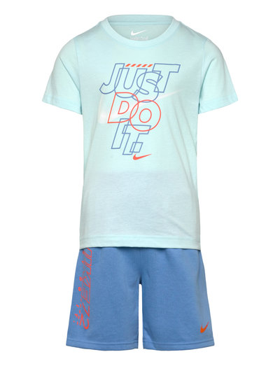 Šis Nike Kids komplekts ietver īssavīknes T-kreklu un šortus. T-kreklam ir klasiska apaļa kakla izgriezums un drosmīgs grafisks drukājums priekšpusē. Šortiem ir elastīga jostasvieta ērtākai pieguļošanai. Šis komplekts ir ideāli piemērots ikdienas valkāšanai vai spēlēšanai ārpus telpām.