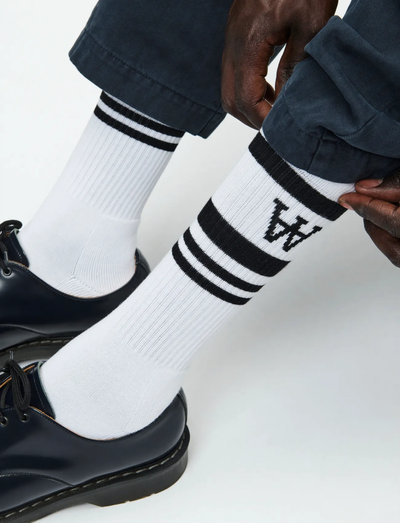 Divi pāri zeķu ar sportiskām svītrām rievotās aprocēs. Katrs pāris ir izgatavots no ērta trikotāžas auduma un apdarināts ar smalkām logotipa detaļām.