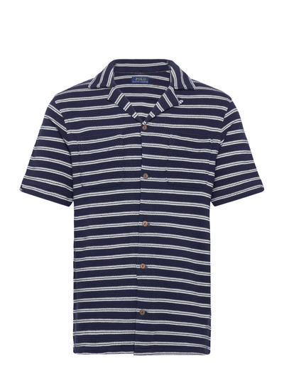 Featuring a camp collar and chest pockets, this short-sleeved shirt offers a relaxed fit. The cotton-blend fabric ensures breathability and comfort, making it ideal for warm weather. Its striped design adds a touch of classic style.