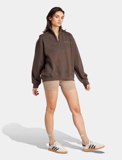 Ervaar ultiem comfort in dit minimalistische sweatshirt. De kwart-rits maakt het gemakkelijk om je look en ventilatie aan te passen, terwijl het subtiele, lineaire logo een vleugje liefde voor het merk toevoegt. De losse pasvorm maakt het ideaal om over een T-shirt of tanktop te dragen, waardoor een ontspannen en stijlvolle look ontstaat in combinatie met joggingbroeken of jeans. Gemaakt van 100% katoen.