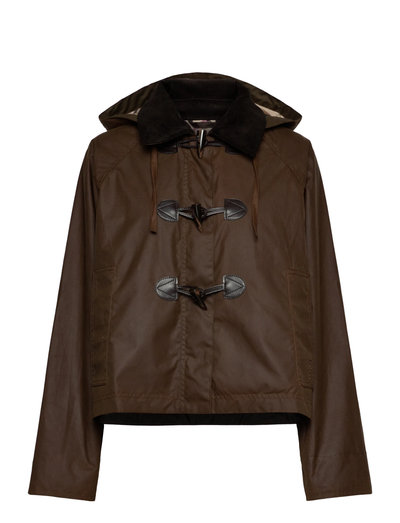 Deze gewaxte duffelcoat combineert een klassiek design met praktische eigenschappen en is een veelzijdige aanwinst voor elke garderobe. Het silhouet met capuchon wordt aangevuld door een kenmerkende kraag van corduroy, terwijl ruime paspelzakken handige opbergruimte bieden. Afgewerkt met traditionele knevelsluitingen en een op erfgoed geïnspireerde tartan voering.