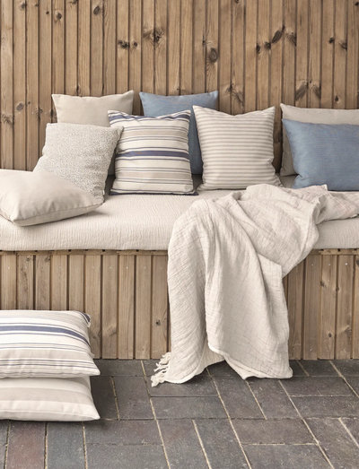 Trendy outdoor cushion with beautiful stripes in blue, beige and sand. Combine with your favorite cushion in the Outdoor series and create a cozy environment in the garden and on the balcony.