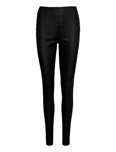 Deze legging is gemaakt van soepel stretch-lam leer en biedt een strak, figuurvolgend silhouet. De hoge taille accentueert de natuurlijke rondingen van het lichaam, terwijl een discrete rits aan de zijkant zorgt voor een vlotte sluiting. Deze legging met volledige lengte is een veelzijdige toevoeging aan elke garderobe.