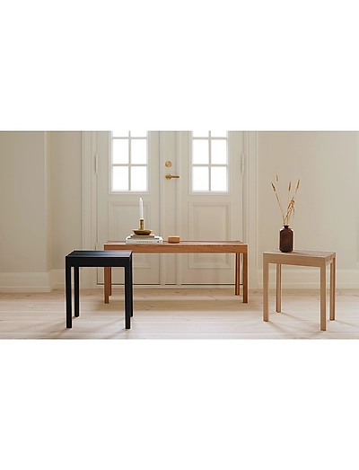 A very versatile and ultra-light weight stool to be used for extra seating, an elegant design object or side table. Even though it is very light in weight there is no compromise in quality, the stool is remarkably sturdy and strong. This piece boasts highly detailed woodwork and minimalistic wooden slat repetition.