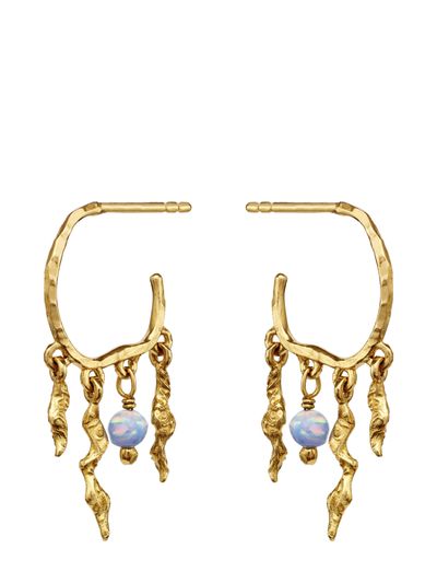 The Bayou hoop has with wavy snakes that has a melted texture and a fine blue opal. Perfect to style alone or in combination with other earrings. Material: Sterling Silver (925) plated with 18 karat of gold, opal